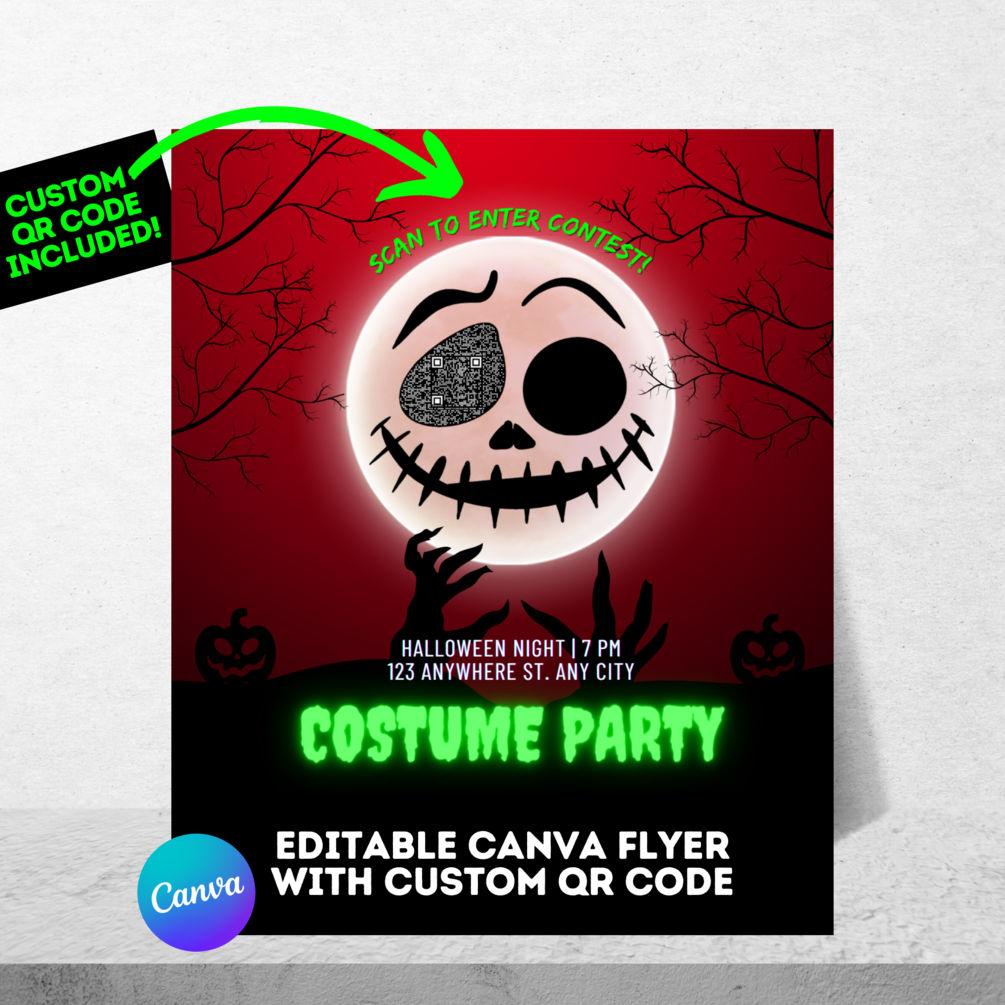 Get ready to spook and impress with your Halloween-themed Custom QR Code and editable Canva flyer.